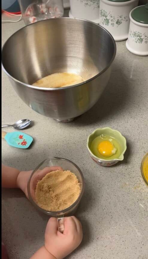 Once that is all whisked to perfection, we will pre heat the oven to 350 degrees.